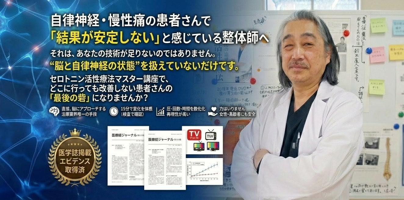 セロトニン活性療法は、脳内物質セロトニンという視点から自律神経を整え、自律神経失調症、うつ、パニックなどの症状の解決に臨床の現場でお役に立てると思います。